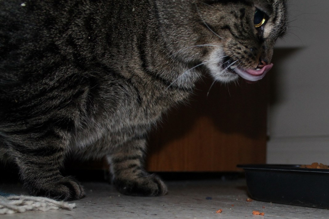 Wow. I always thought a cat's tongue was pink all the way through, not white underneath. And how long is that, over your schnoze?.. I say nothing.