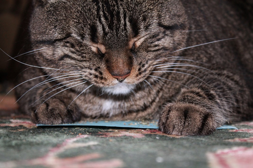There's catnip on her nose.