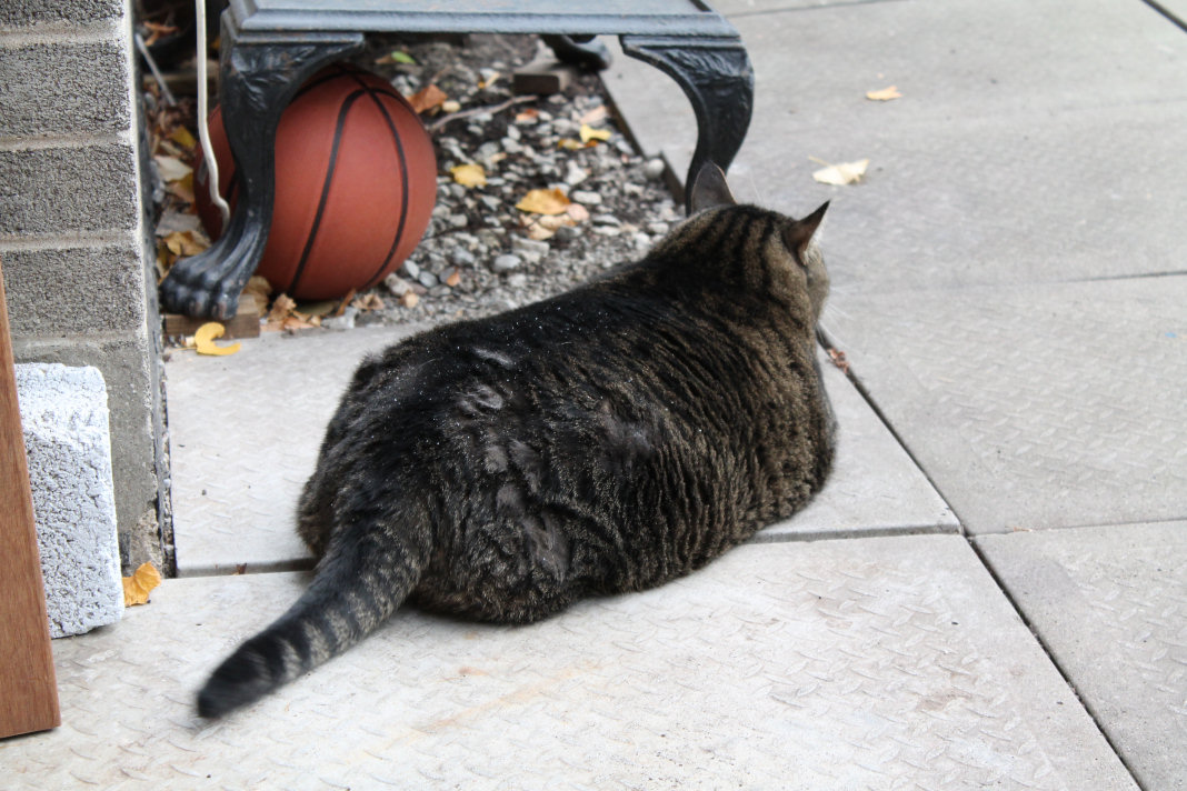 brushing her, till she noticed our visitor.