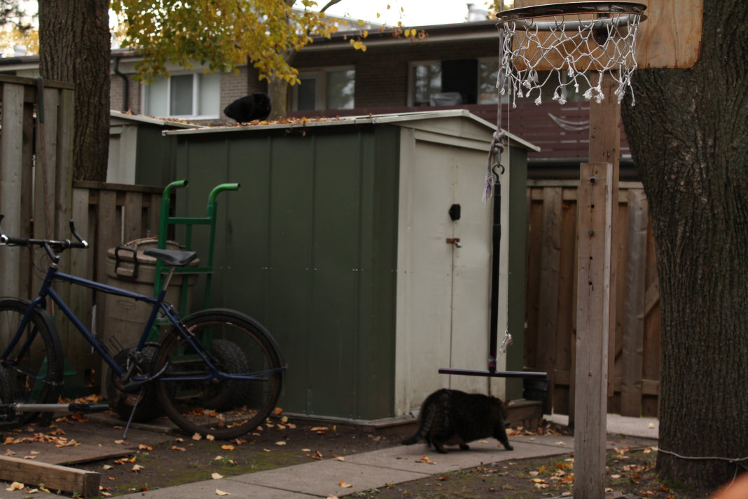 Ophelia thinks the other cat is coming around the fence... Guess not.