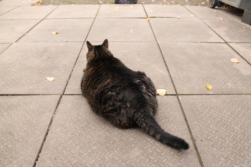 Now she has to guard and watch (still growling)... The other cat went on it's way across the fence later. Fun day!